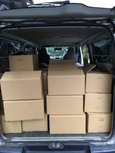 搬出の頃には雨も上がり、一気に箱詰めした本を2階からハイエースに積み込みました。
