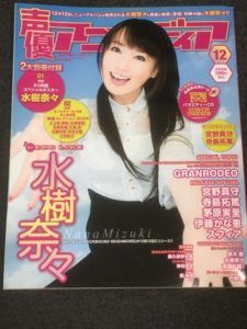 テーブルと床の上には今回お売り頂ける水樹奈々さんが掲載された雑誌や関連グッズが大量に並べられています。